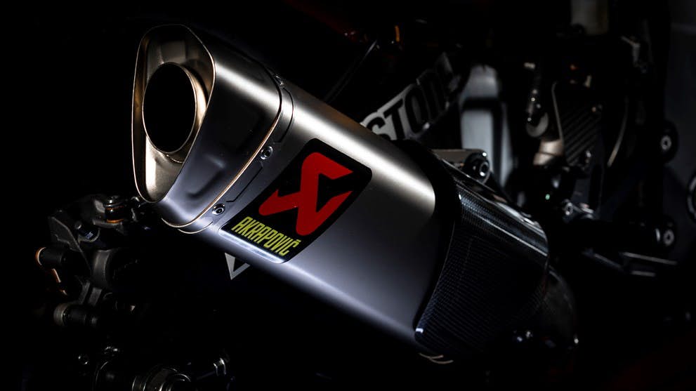 Sistem gantungan ialah dari Ohlins depan dan belakang (sepit udang FGRT 219 dan penyerap hentak TTX36 di belakang) sementara sistem ekzos lengkap ialah model Akrapovic Evo 2 Titanium.