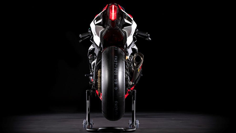 Brek semestinya Brembo dengan angkup GP4-RX dan cakera-cakera T-Drive 320mm. Tayar Bridgestone V02 digunakan, slick sahaja.
